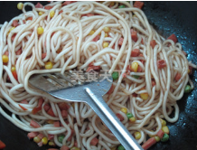 7、下QQ面炒勻。